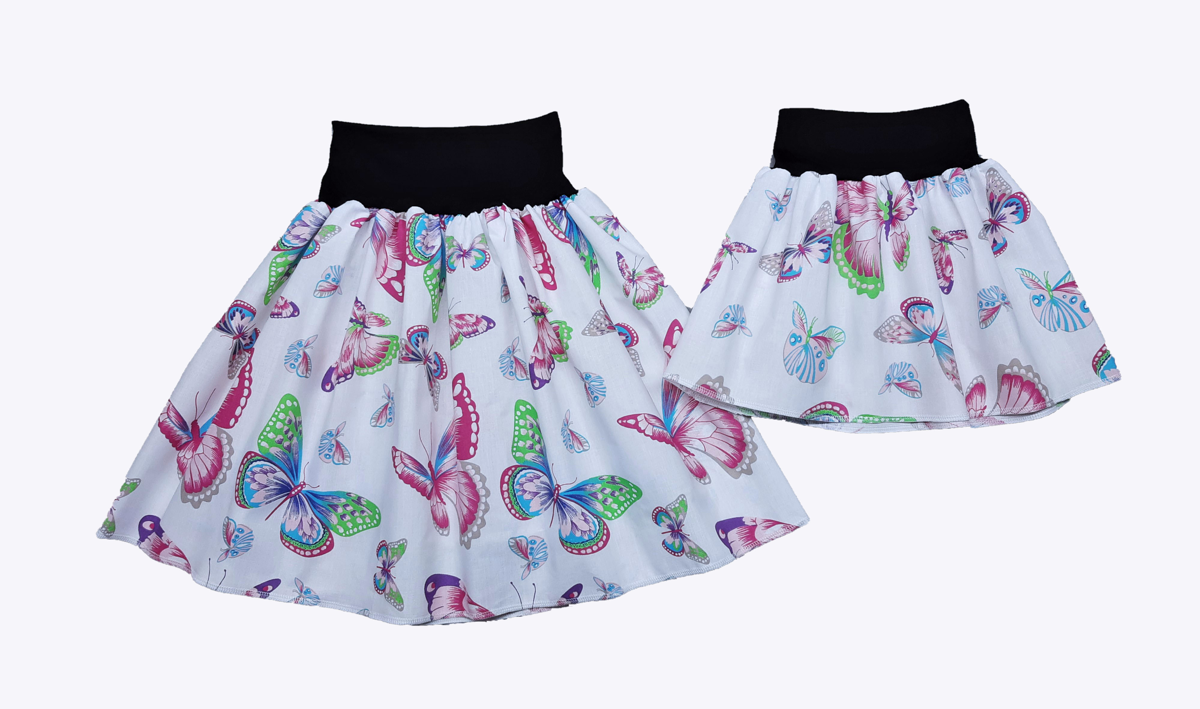 Feeling, SET dámská sukně + dětská, bílá s motýli, v pase černá