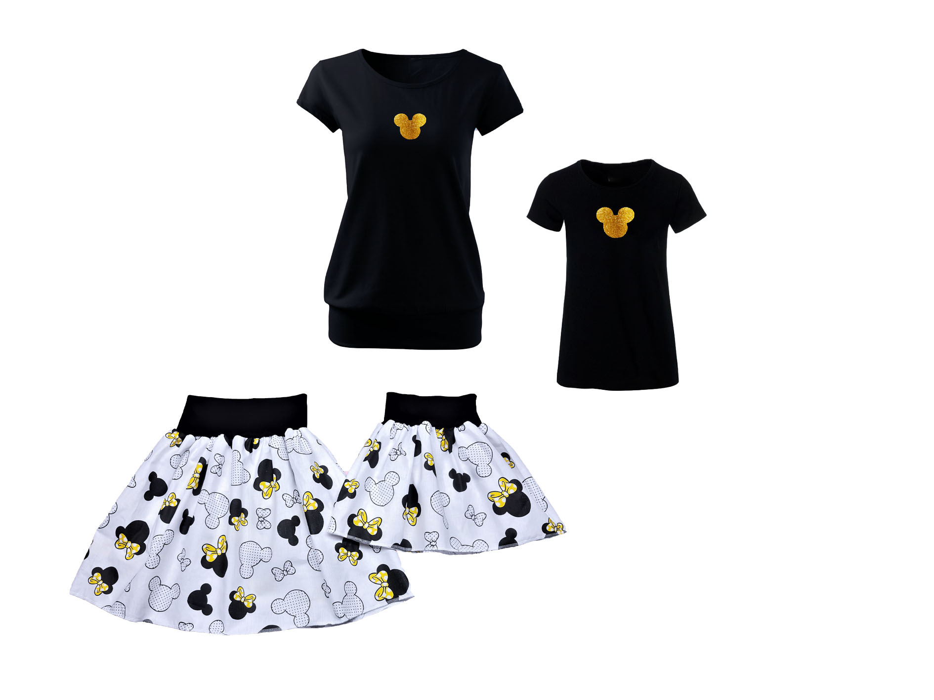 3. Feeling, Set 4 ks - sukně dámská + sukně dětská + tričko dámské s potiskem + tričko dětské s potiskem se zlatou mašlí