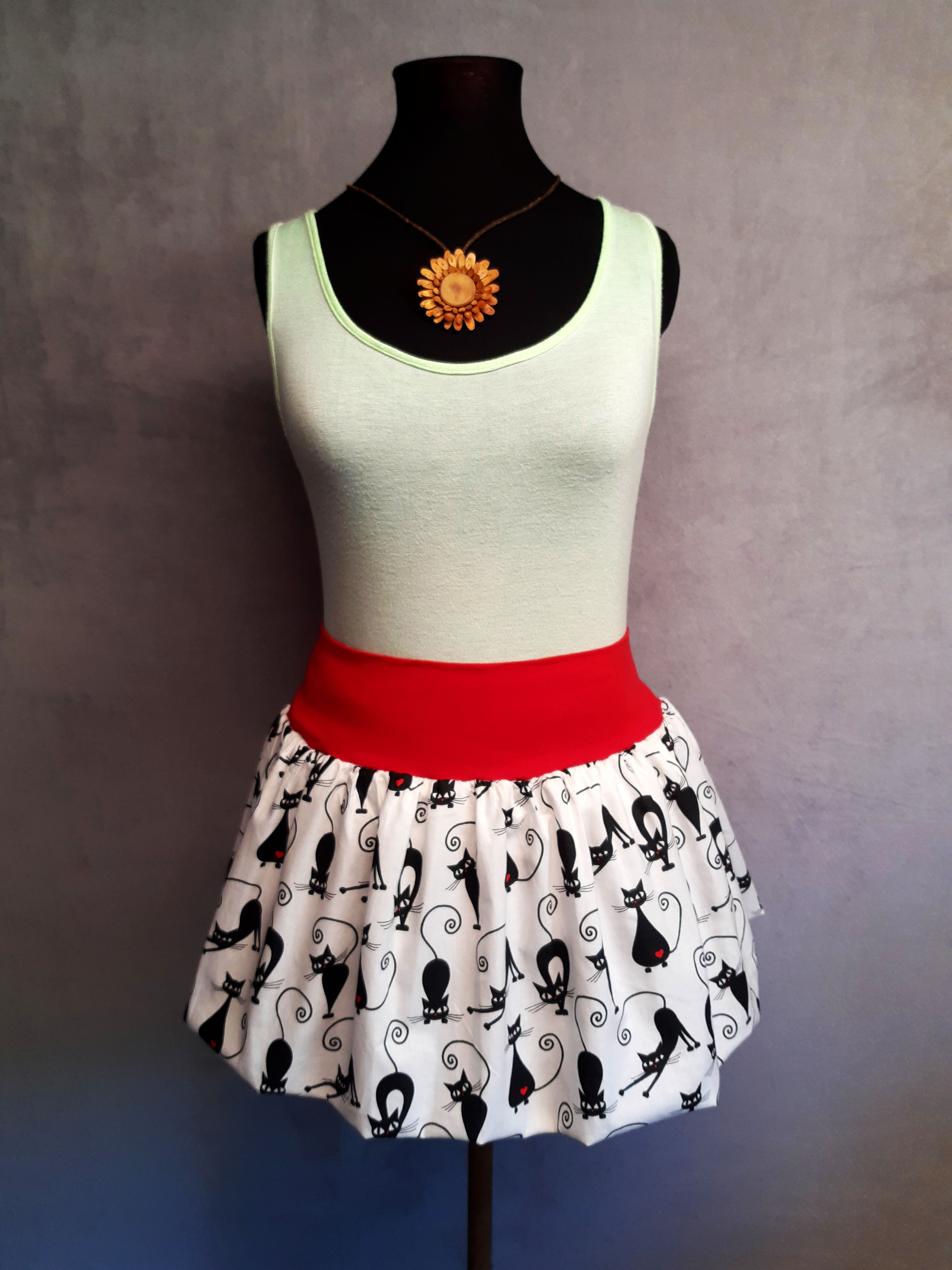 Balonová sukně  Materiál bavlna plátno 100% v pase pružný lem  Vel.XL -XXL celková délka 45cm  Podšívka pužná  uplet bavlna. celý popis