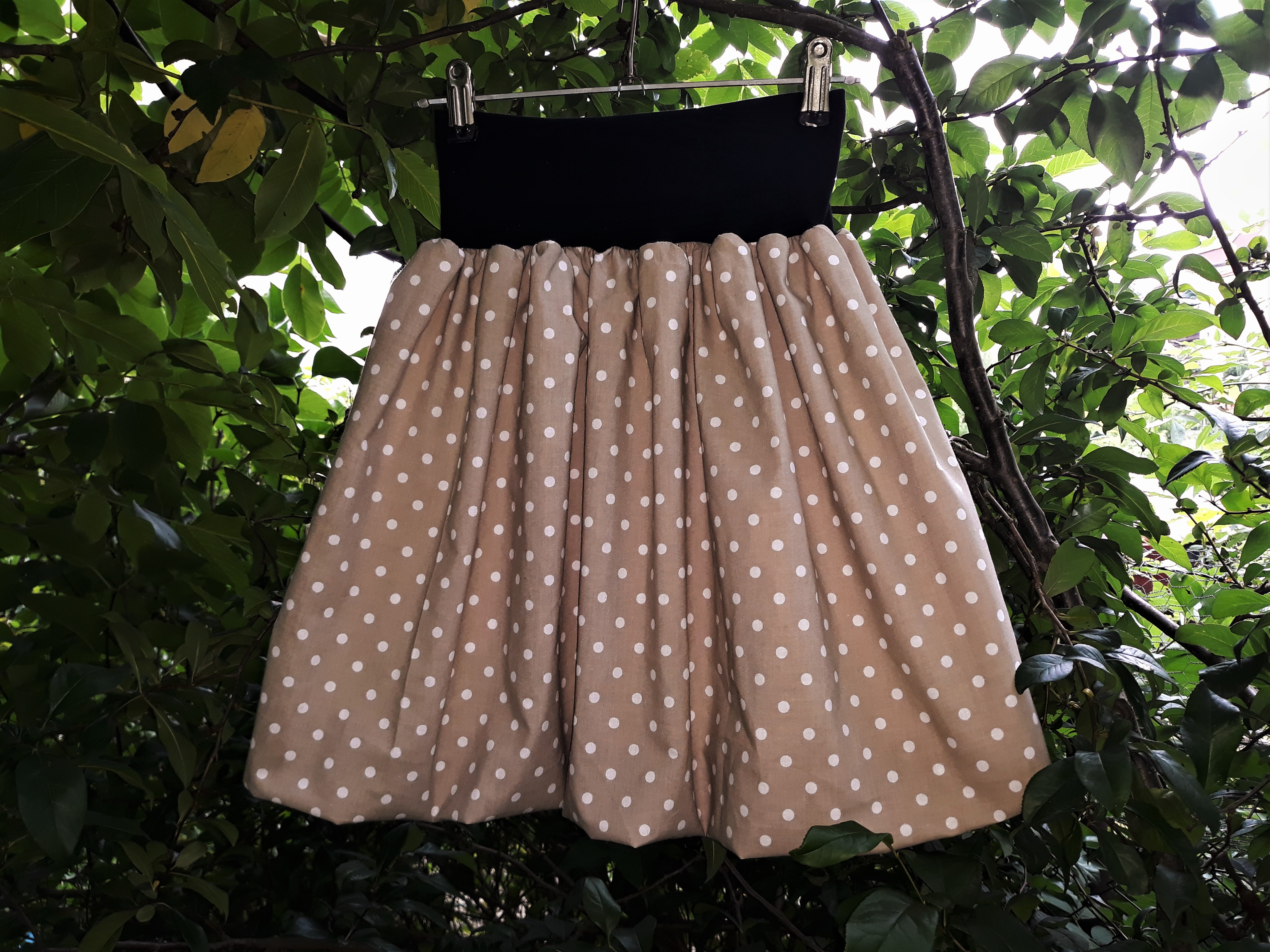 - Feeling, balonová sukně dámská nebo dětská, hnědá s bílými puntíky, v pase černá