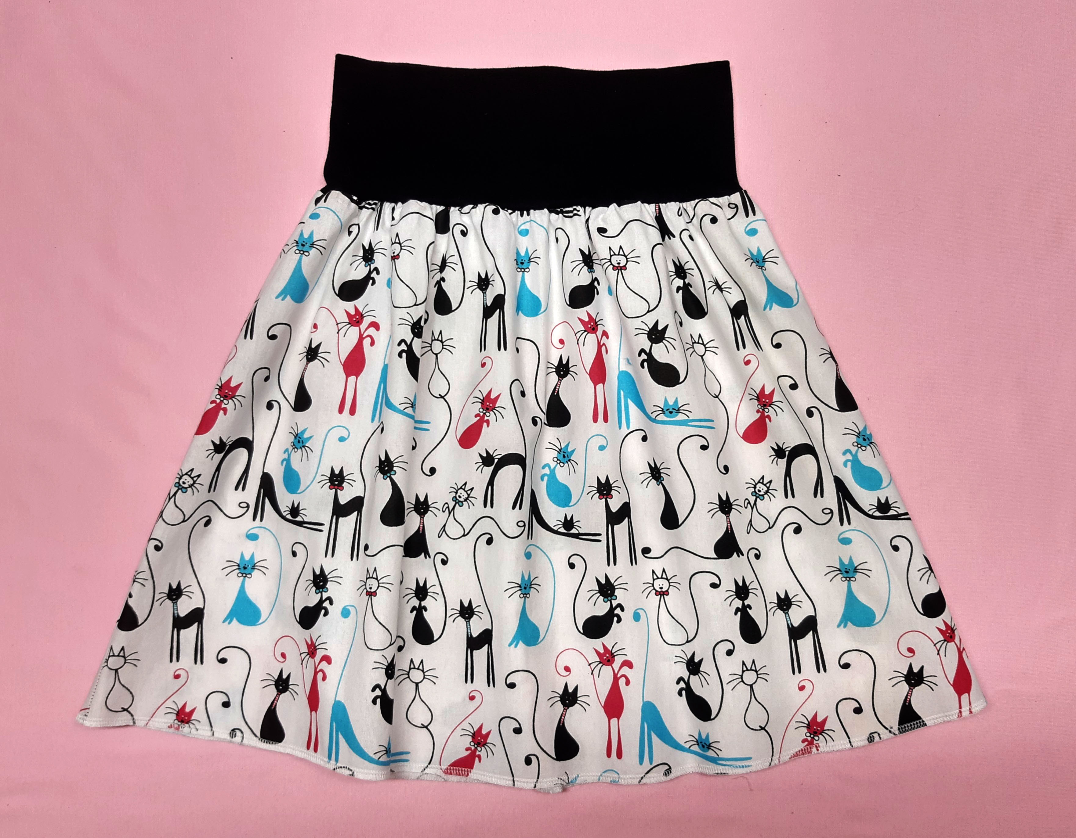 Feeling, letní sukně dětská/dámská, Bílá s barevnými kočičkami, lem bílí