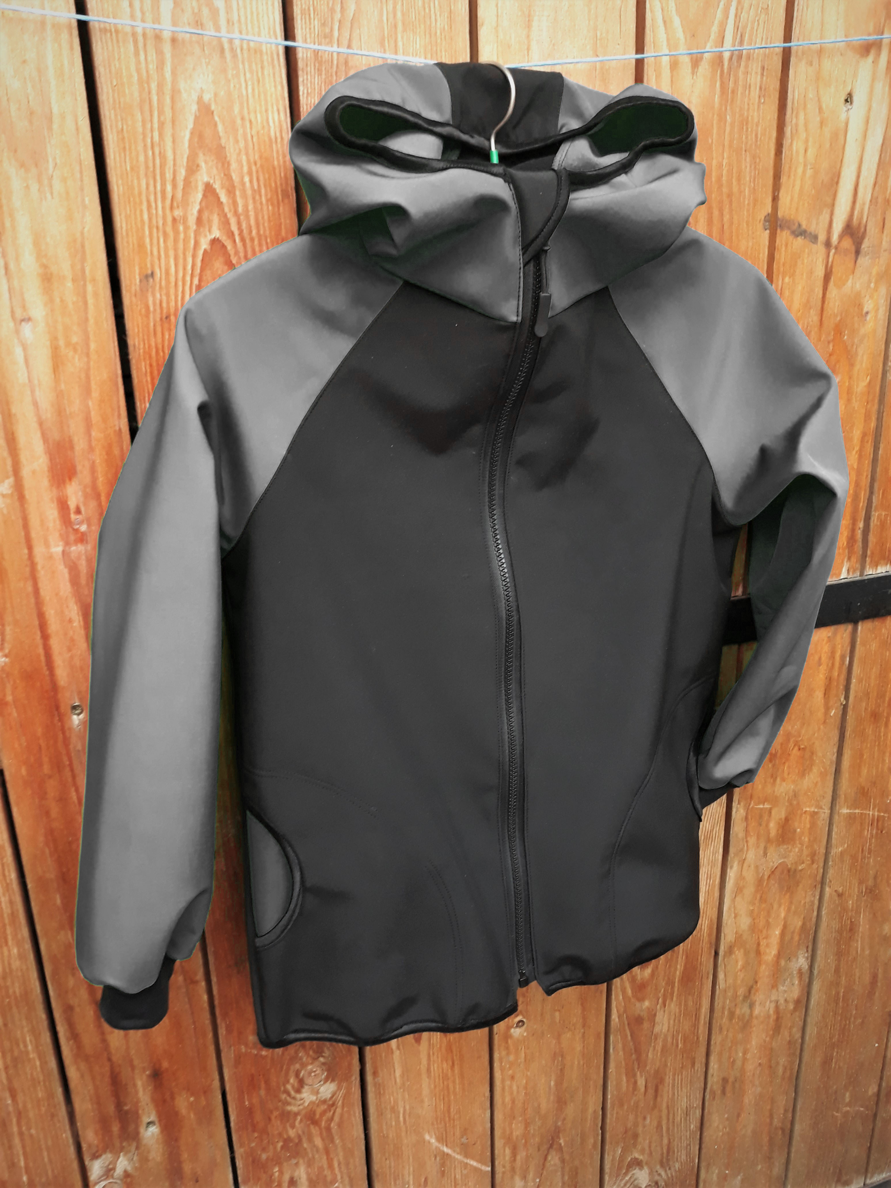 Feeling, softshellová bunda jaro/podzim z rubu úplet, s kapucí, černo šedá