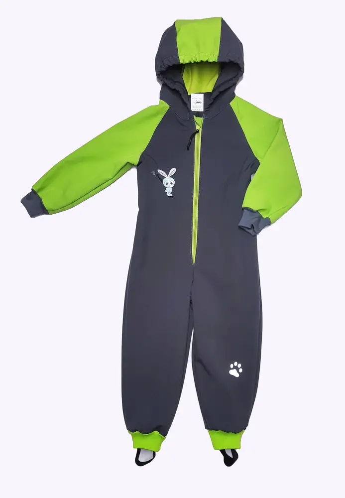 • Softshellová kombinéza s fllece vrstvou, vel. 98 šedo zelená a reflexními prvky