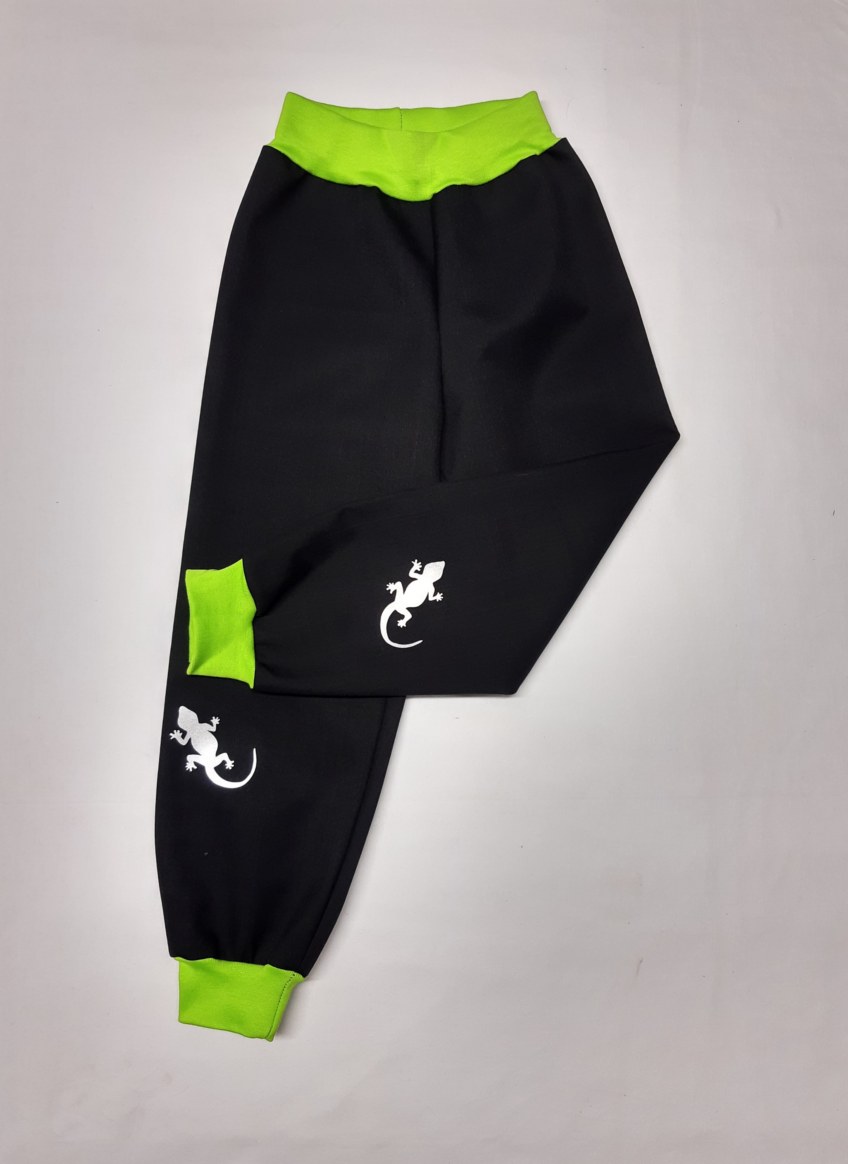 - Feeling, softshellové kalhoty letní,4erné s sv. zelenou a ref. ještěrka 2 ks