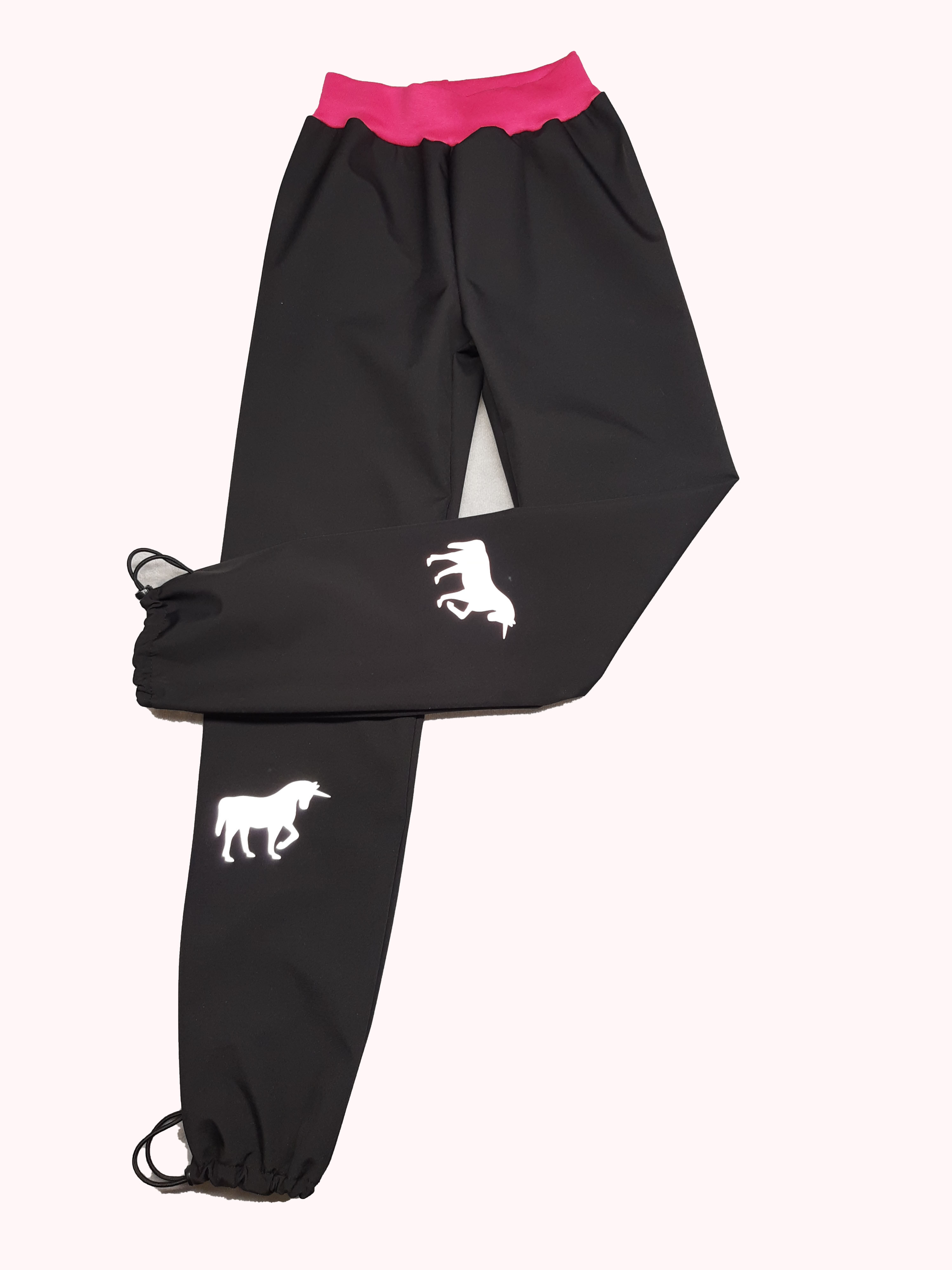 Feeling, softshellové kalhoty letnínohavice na stahování černé s růžovou a ref. jednorožce 2 ksZboží vyrobíme a odešleme do 14 pracovních dní369 Kč/ ks
