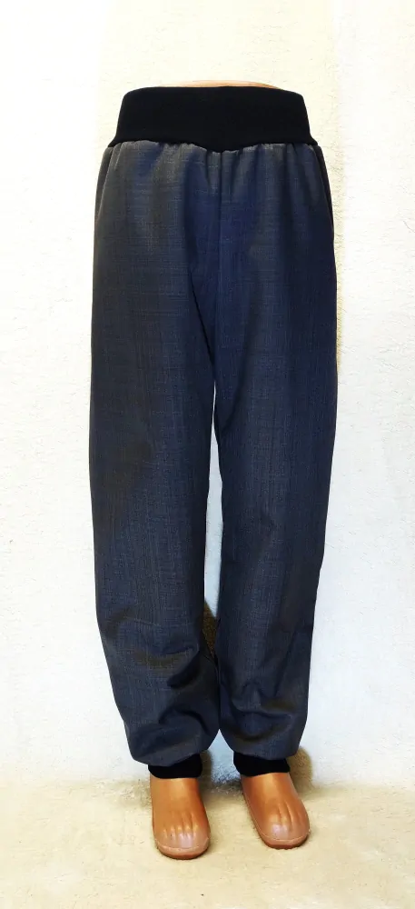 Dětské softshellové kalhoty v pase a na nohavicích pružný lem bez kapes.