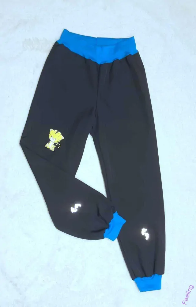 Softshellové kalhoty s fleecem, vel. 122, šedé s tyrkys, reflexními prvky a obrázkemZboží je hotové skladem k odeslání do 1-10 pracovních dní .390 Kč/ ks