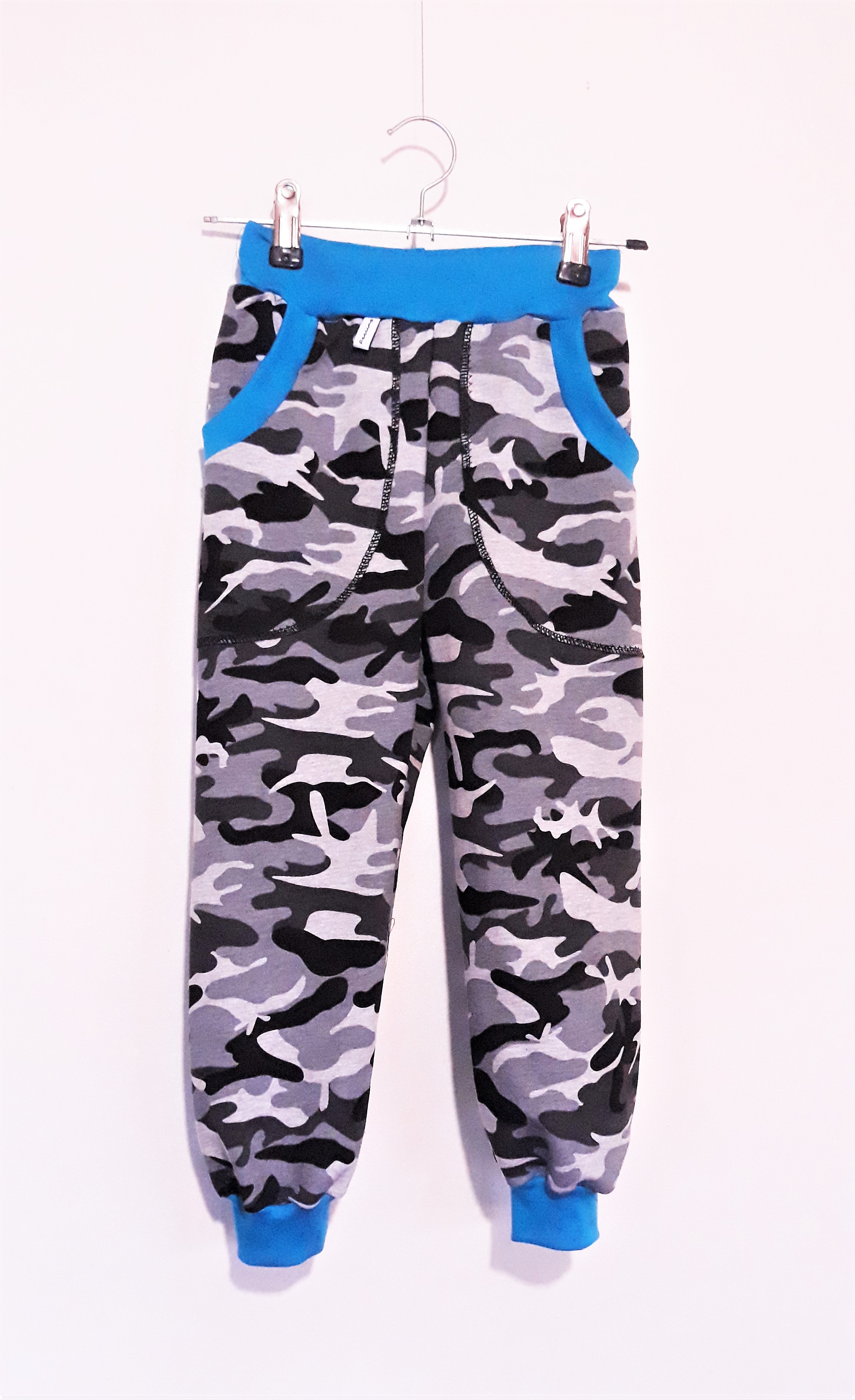 Felling, Tepláky s kapsami, šedý maskáč s tyrkysovým lememZboží vyrobíme a odešleme do 14 pracovních dní 5 ks285 Kč/ ks