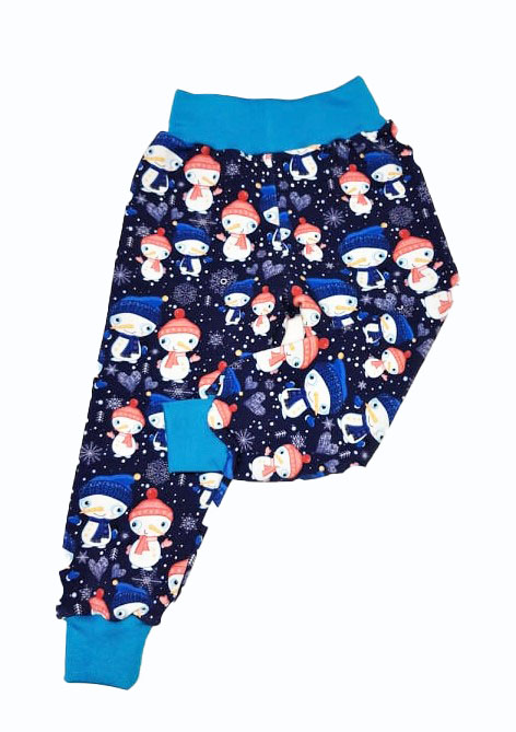 Felling, Tepláky slim DĚTSKÉ/DÁMSKÉ, sněhuláčkové s tyrkysovým lememZboží vyrobíme a odešleme do 14 pracovních dní 7 ks215 Kč/ ks