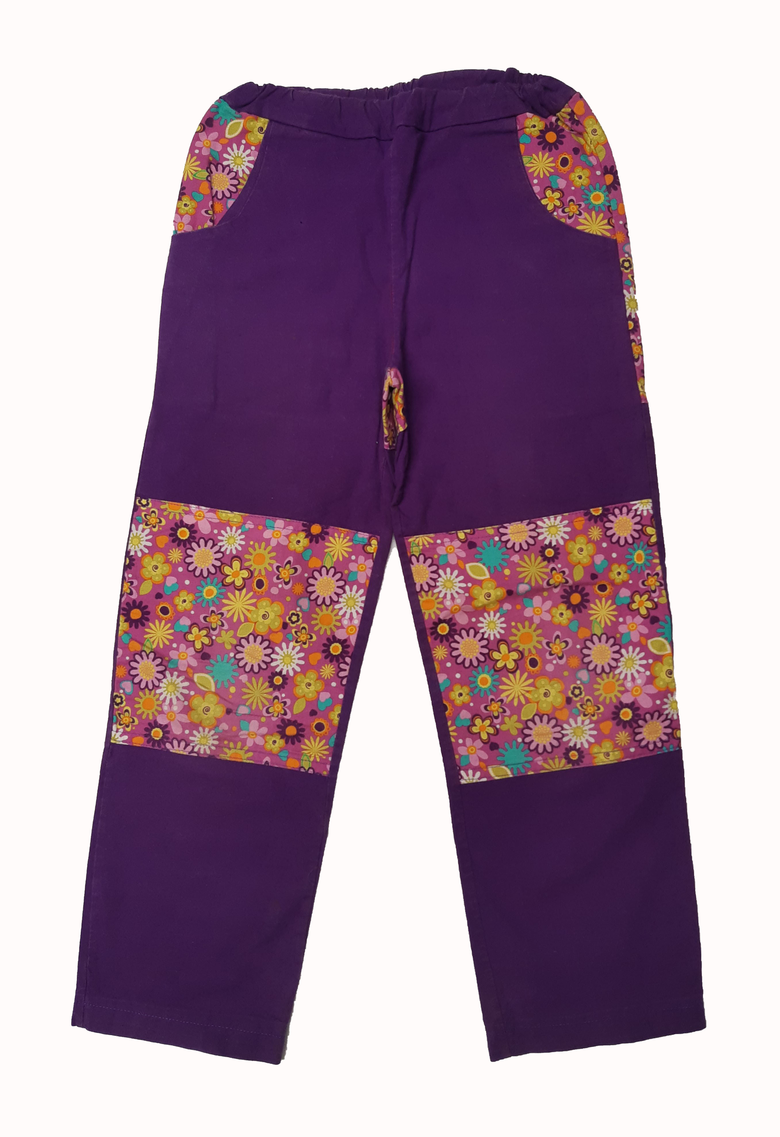 Kalhoty bavlna, vel. 116, fialové s kytičkami