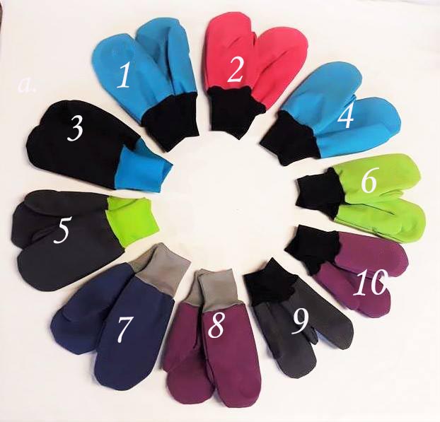 Softshellové rukavice Z rubu fleece vrstva Délka je vuvedena bez lemu. Velikost 1 - šíře 7,5cm  délka 12,5cm věk cca 6-18 měsícu Velikost 2 - šíře 8cm  délka 14 cm  věk cca 2-3 roky Velikost 3 - šíře 8,5 délka 15 cm věk 4-6 let Velikost 4  - šíře 9 délka 17cm věk 7+ let Do objednávky vybýrejte velik... celý popis