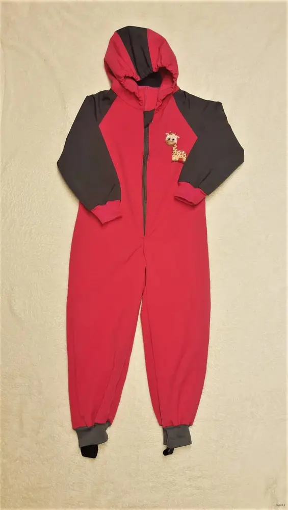Kombinéza zapínání na zip s kapucí  v zadním díle v pase všitá guma.