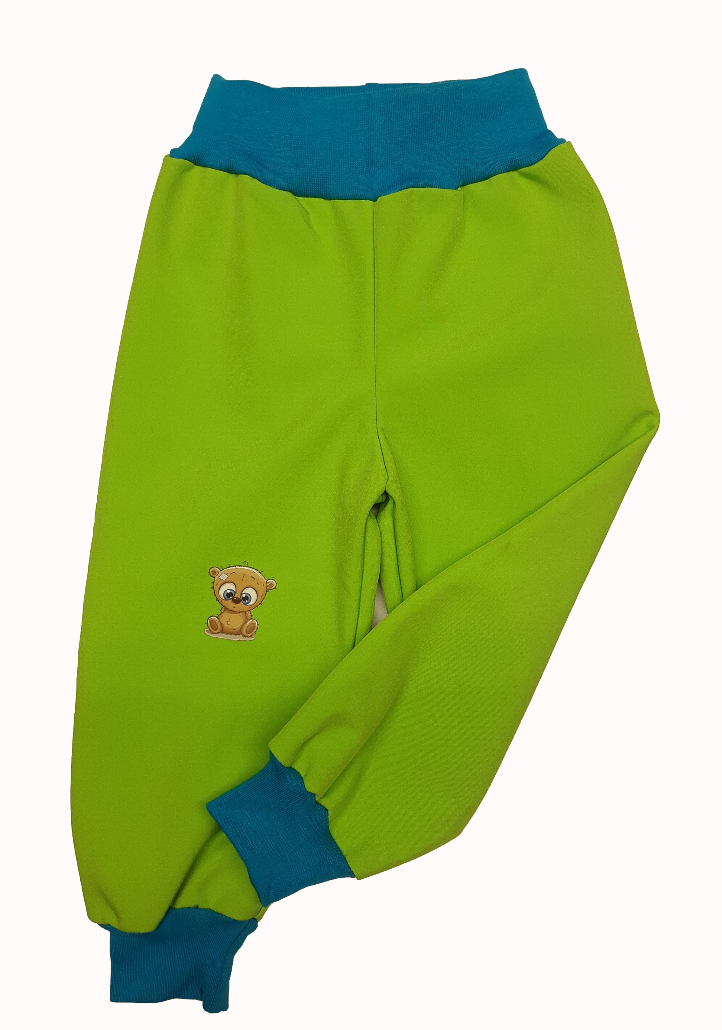 - Softshellové kalhoty s fleecem,vel. 80, hráškově zelené s tyrkys