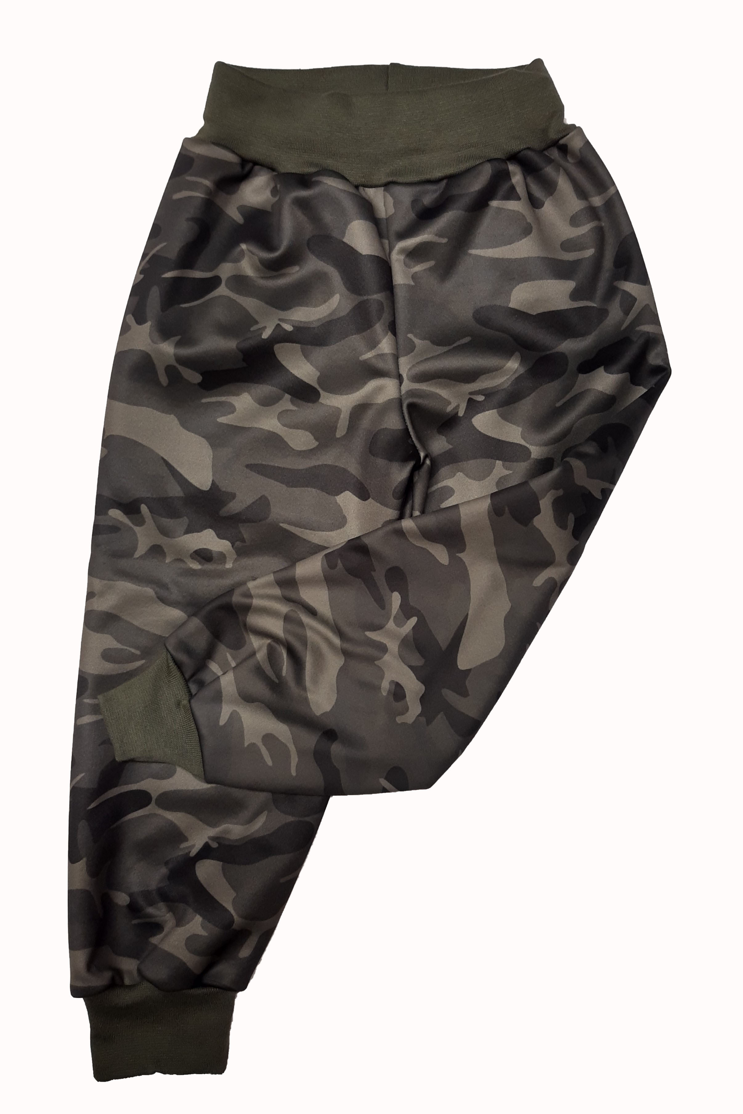- Softshellové kalhoty s fleecem odlehčený, vel. 92,khaki maskáč s černou