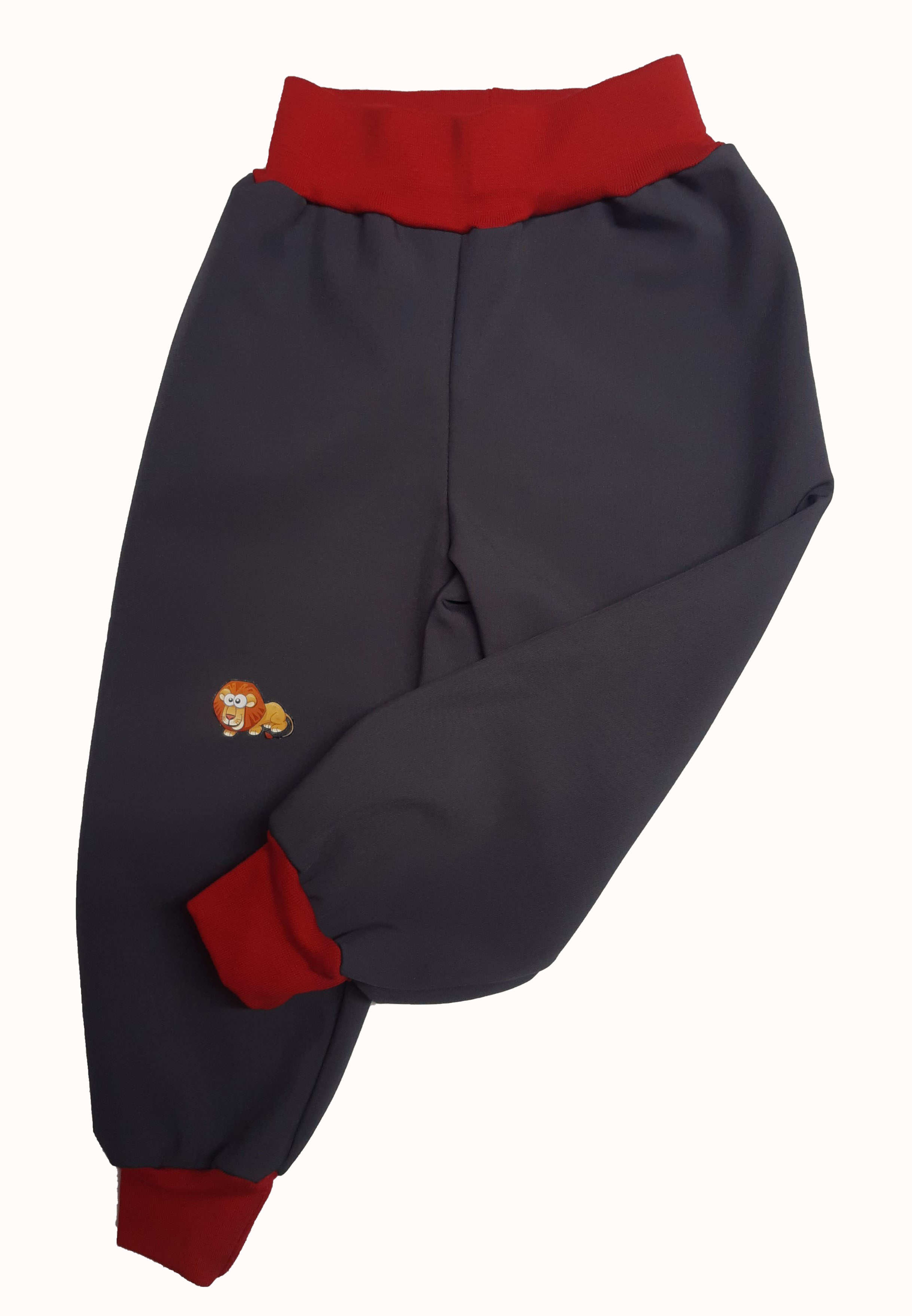 - Softshellové kalhoty s fleecem, vel. 86, šedé s červeným a aplikací