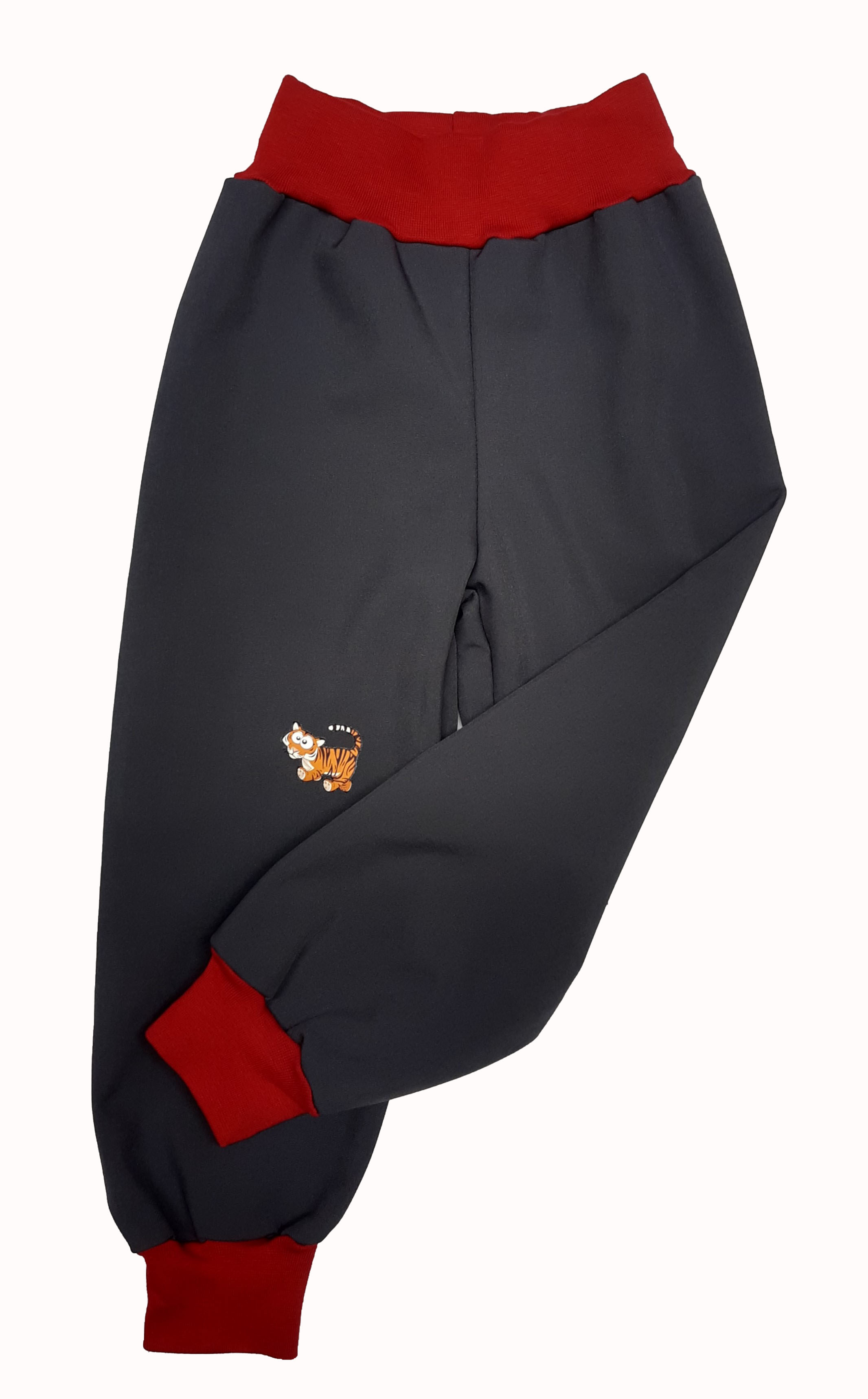 - Softshellové kalhoty s fleecem, vel. 92, šedé s červený a obrázkem