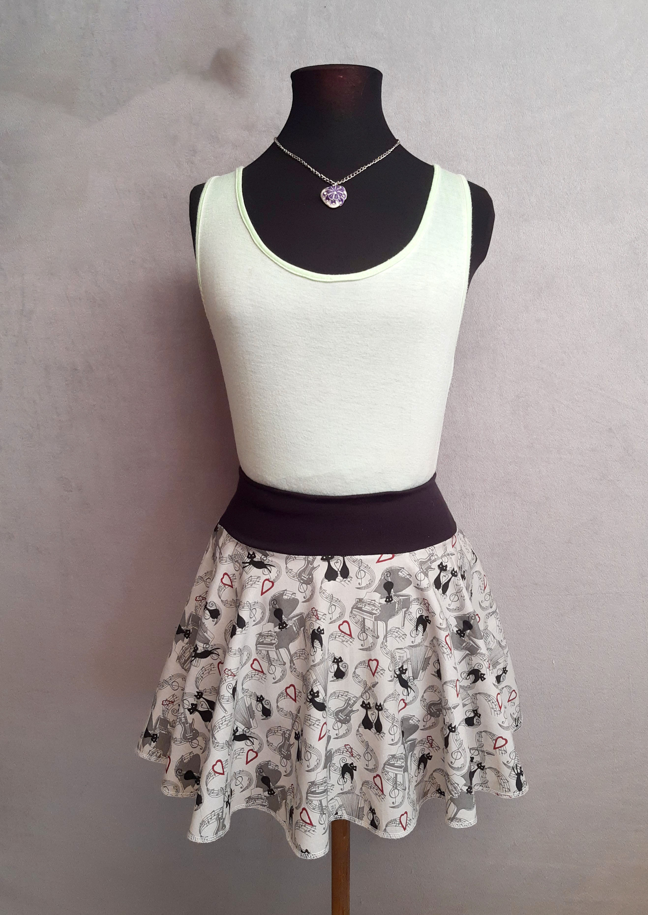 Sukně je zakončena na overlokové šicím stroji.