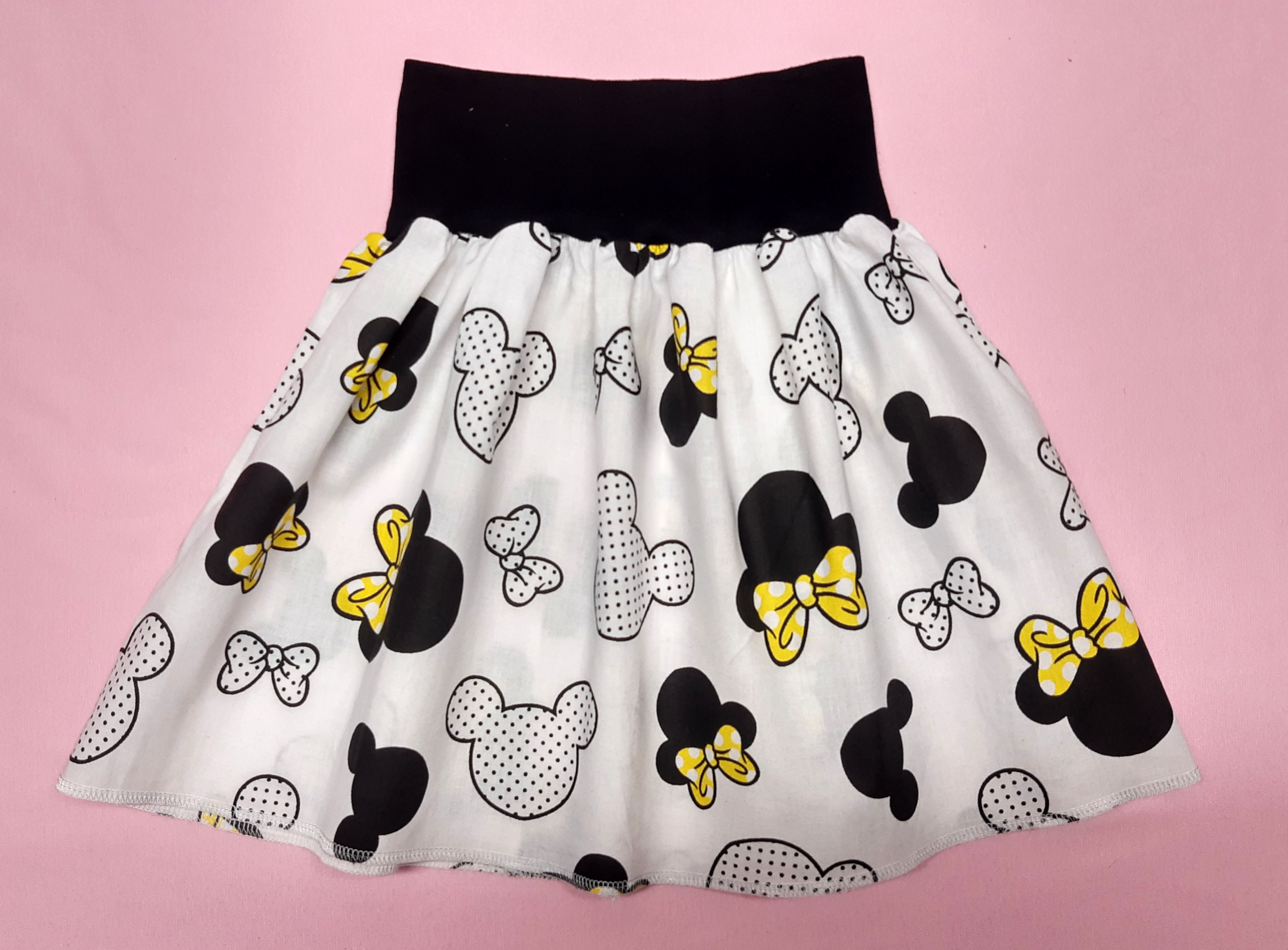 Letní sukně dámská, MINI s žlutou mašlí, černý lem vel. M -L