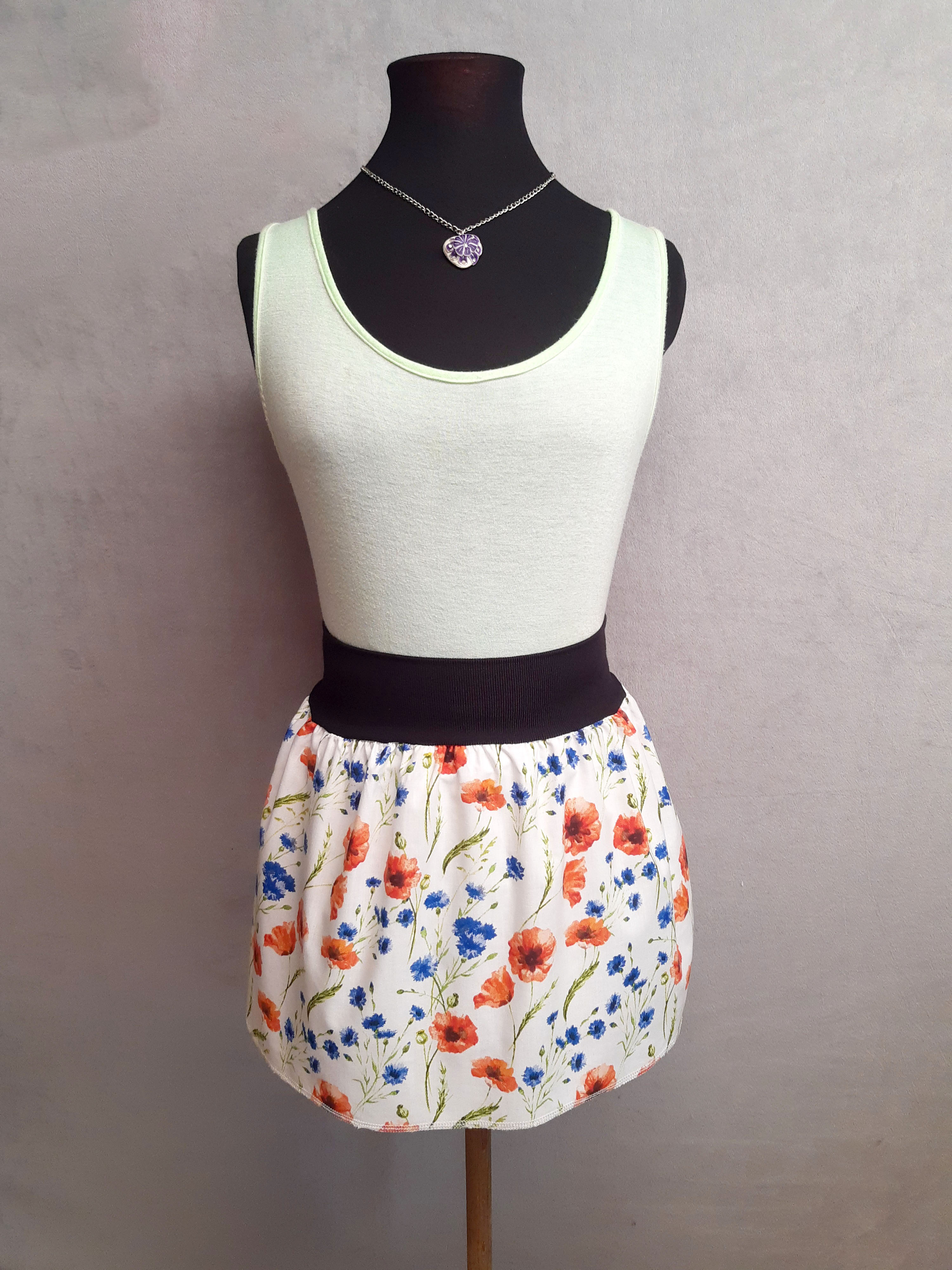 Sukně je zakončena na overlokové šicím stroji.