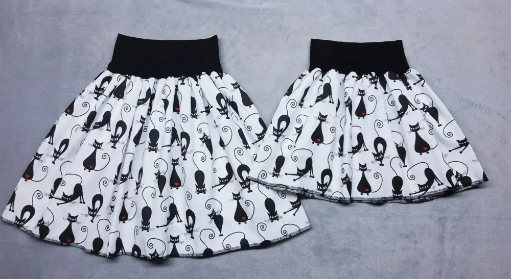 Sukně je zakončena na overlokové šicím stroji.