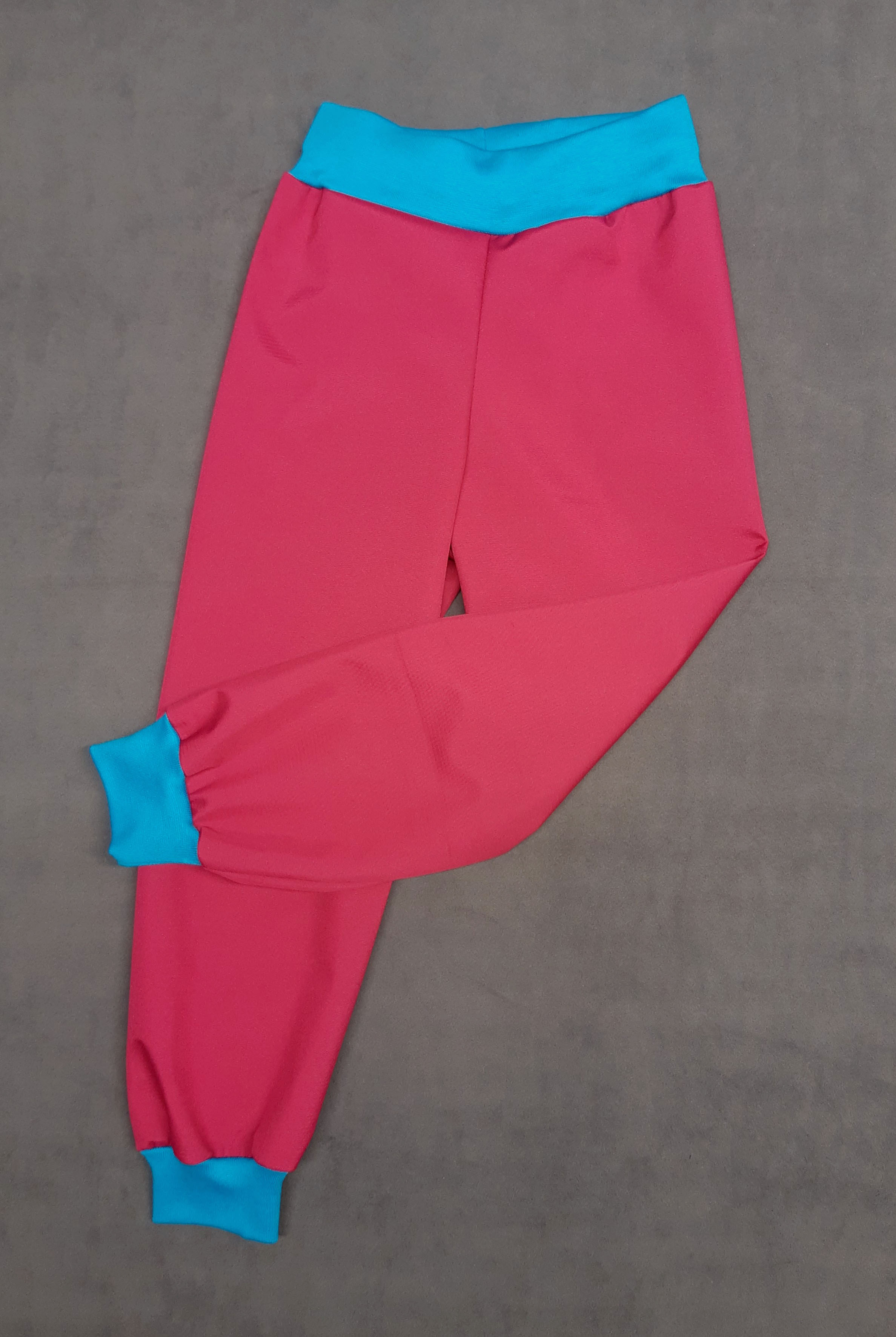 - Sofhellové kalhoty letní, růžové s tyrkys vel.80