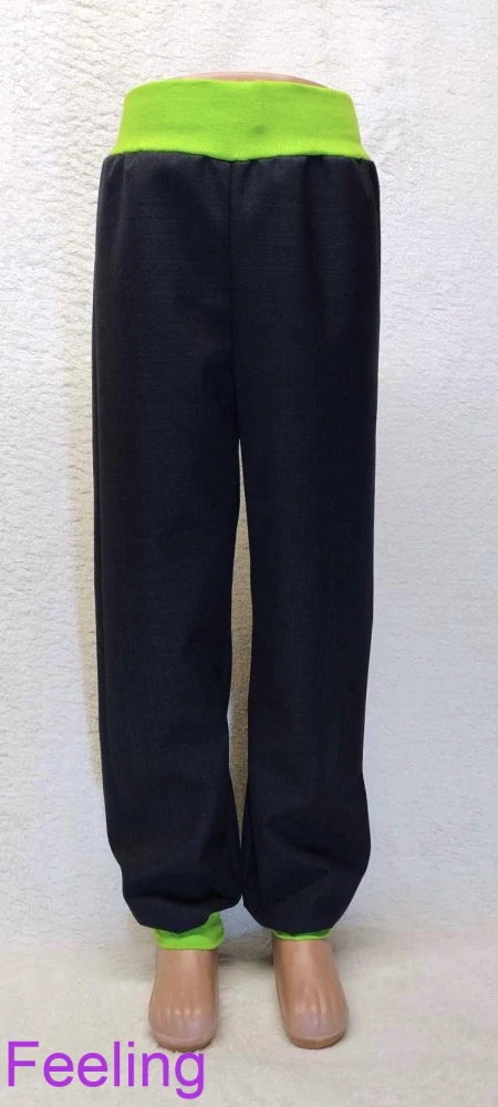 - Softehellové kalhoty s beránkem, vel. 152, černé se sv. zelenou