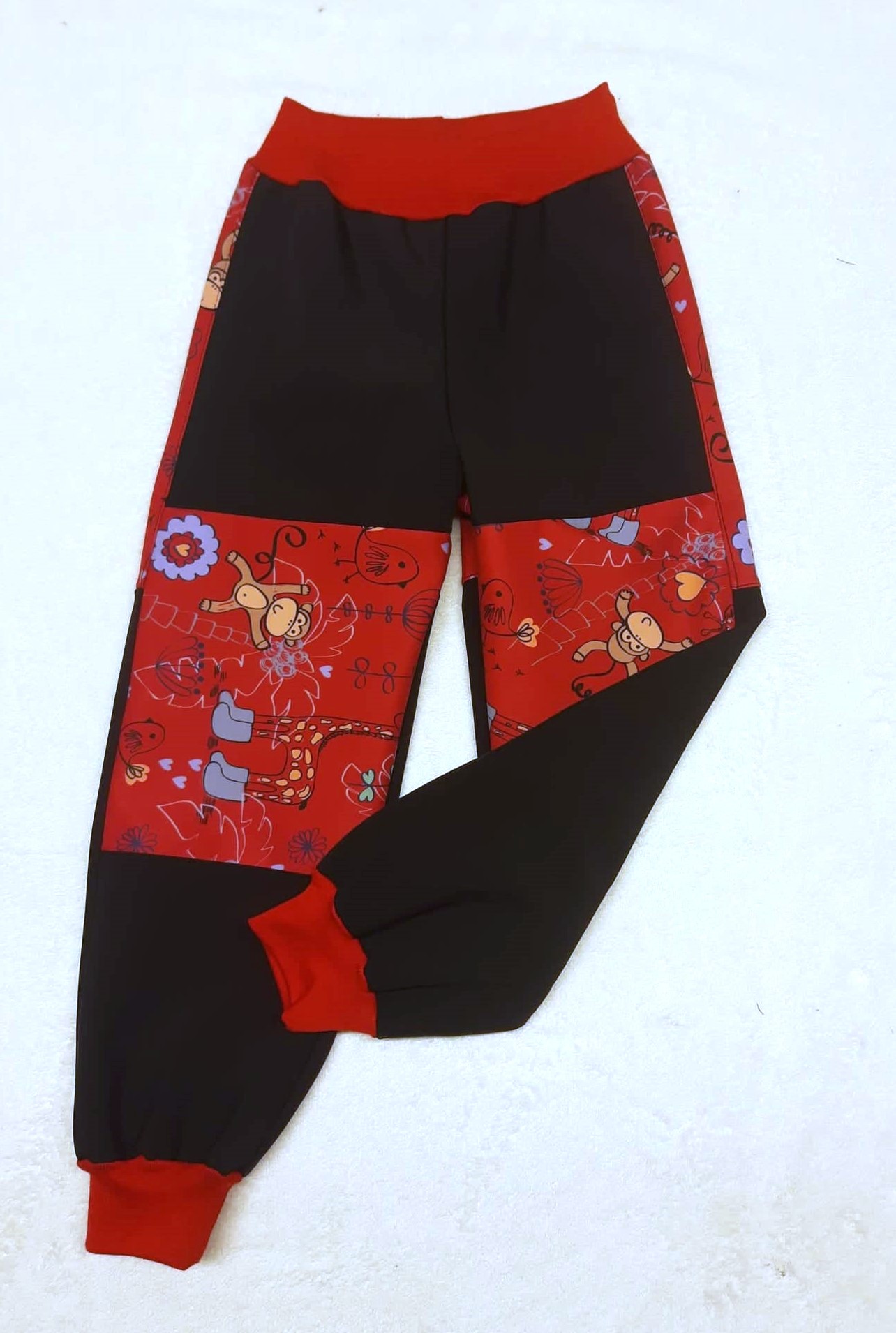 Softehellové kalhoty s fleece , vel. 110 , Dvoubarevné, černé a čevená zvířatka.Zboží je hotové skladem k odeslání do 1-10 pracovních dní .410 Kč/ ks