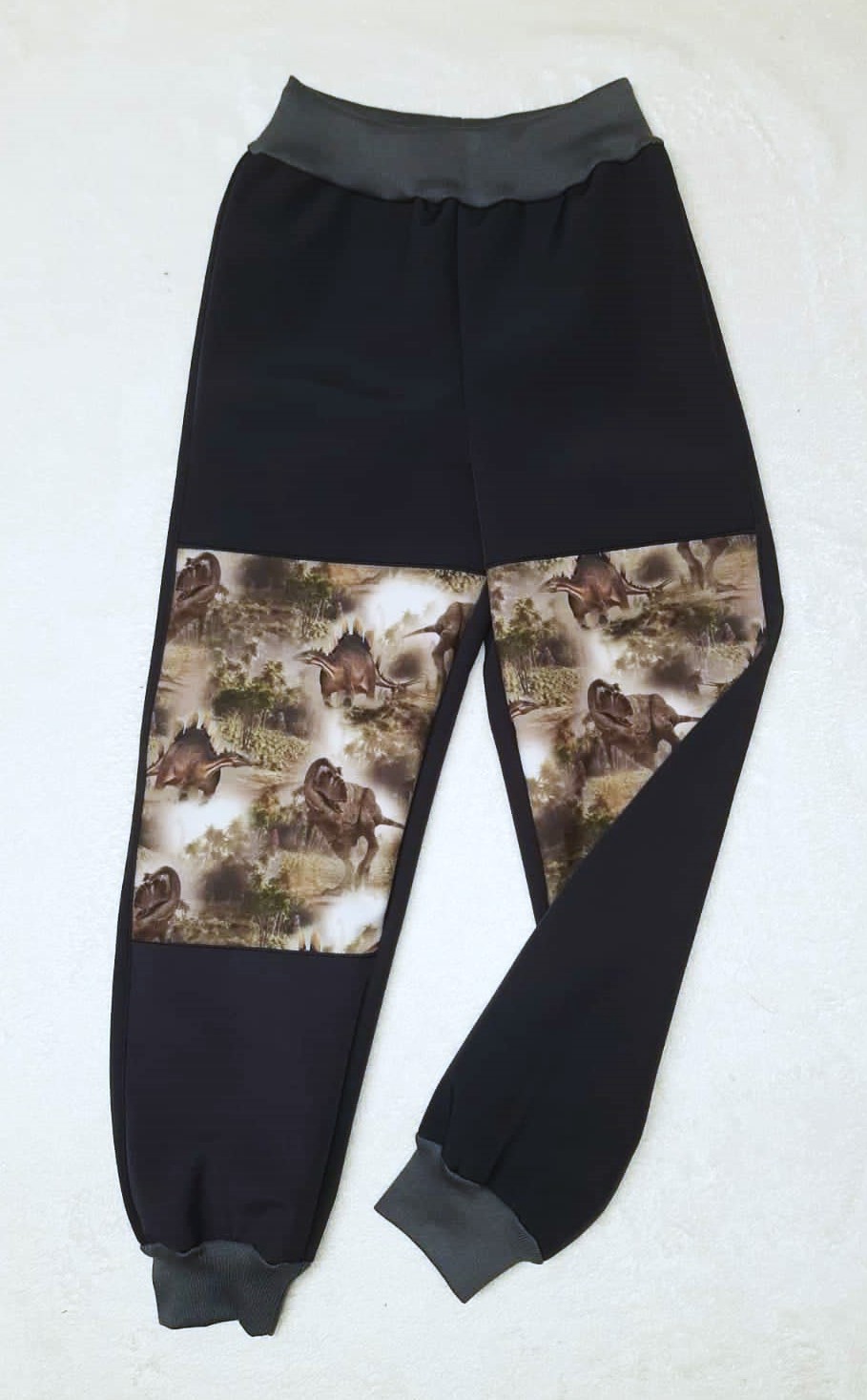 Softehellové kalhoty s fleece , vel. 116 Kombinované černé s dinosauryZboží je hotové skladem k odeslání do 1-10 pracovních dní .460 Kč/ ks