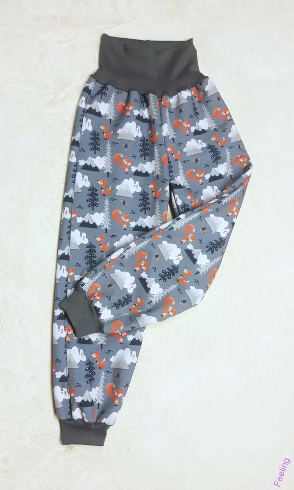 - Softehellové kalhoty s fleece , vel. 116, s liškama
