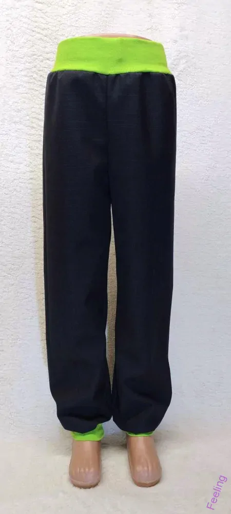 - Softshellové kalhoty letní, vel. 146, černé s sv.zelenou