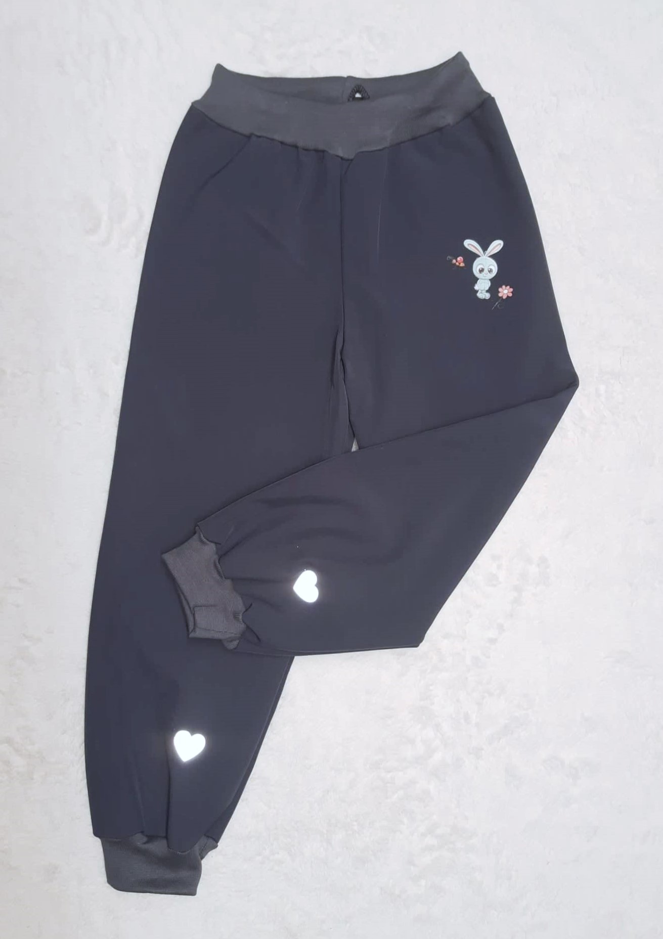 - Softshellové kalhoty s fleece, vel.110, šedé s aplikací a reflexními prvky