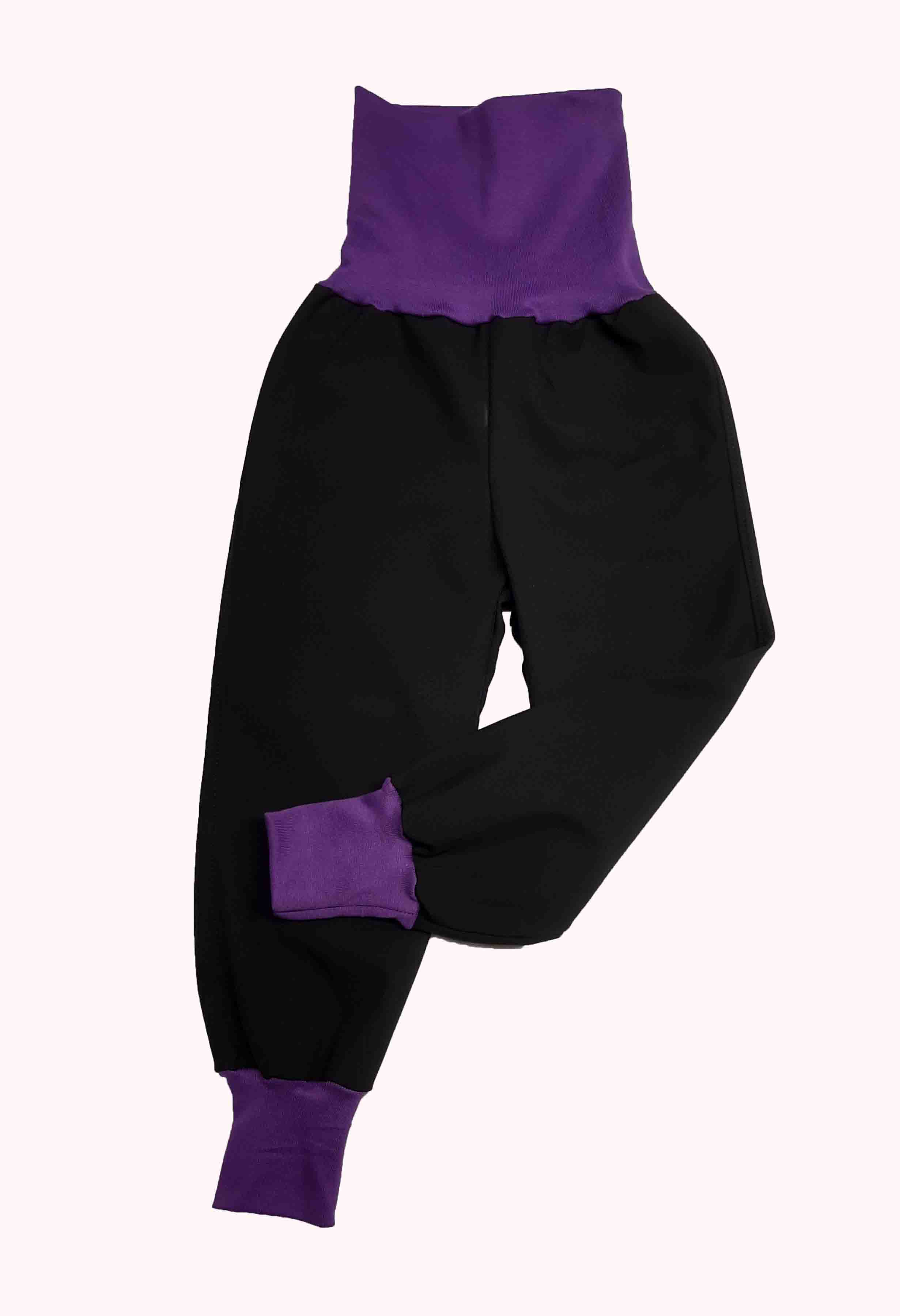 - Softshellové kalhoty s fleecem odlehčené rostoucí, vel.116/122, černé s fialovou