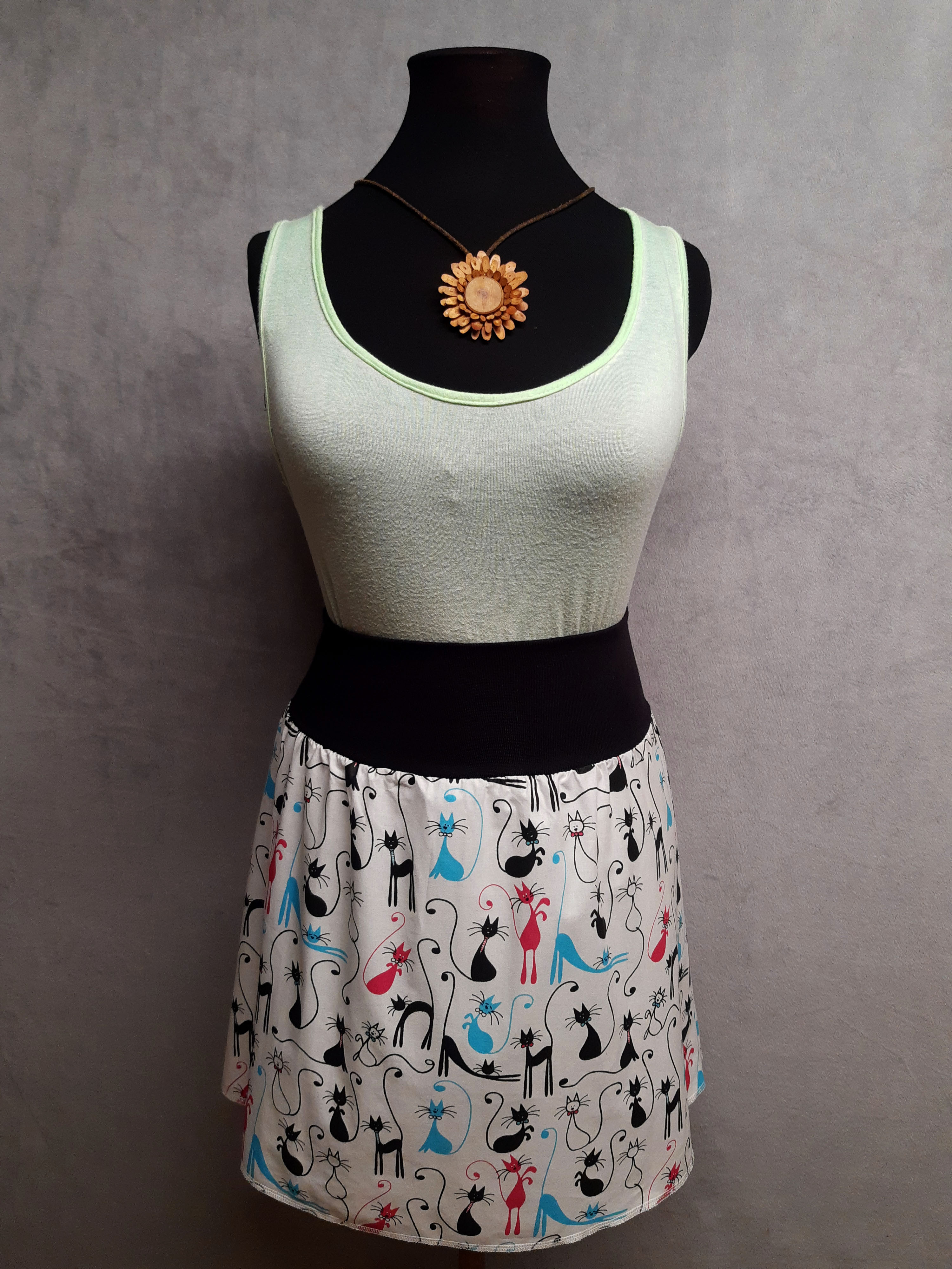 Sukně je ušita 100% bavlna. V pase pružný lem bavlna + elastan.    TABULKA VELIKOSTÍ U dámských velikostí je nejdůležitější obvod přes boky, pase se popřípadě přispůsobý   Velikost.............obvod pasu...........obvod boku.........celková délka  XS.............................64-74................... celý popis